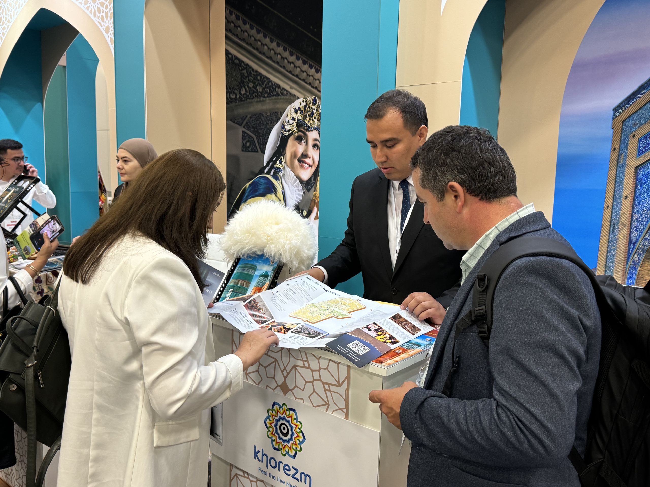 Yarmarkada Xorazm vohasining turizm jozibardorligini dunyoga tanitish va xorijiy sayyohlar oqimini yanada oshirish bo'yicha hamkorlik aloqalari yo'lga qo'yilmoqda.