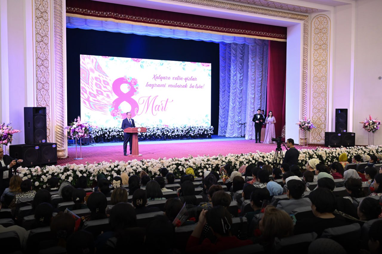 Бугун вилоят мусиқали драма театрида баҳор ва яшариш, гўзаллик ва нафосат байрами – Халқаро хотин-қизлар кунига бағишланган тантанали тадбир ўтказилди. Байрам тадбирига вилоятимизнинг барча шаҳар ва туманларидан турли соҳаларда меҳнат қилиб, юқори натижаларга эришиб келаётган, ижтимоий ҳаётда фаол хотин-қизлар таклиф этилди.Вилоят ҳокими Жўрабек Рахимов тадбир иштирокчиларини 8 март - Халқаро хотин-қизлар куни билан самимий қутлади. Оила ва жамиятни мустаҳкамлаш, ёш авлодни ватанпарварлик руҳида тарбиялаш борасидаги муносиб хизматлари учун вилоятимиз аёлларининг бир гуруҳига "Мўътабар аёл" кўкрак нишони ва вилоят ҳокимининг Фахрий ёрлиғи ҳамда қимматбаҳо совғалари топширилди. Вилоят санъат усталари ижросидаги байрам дастури тадбирга ўзгача файз бағишлади.