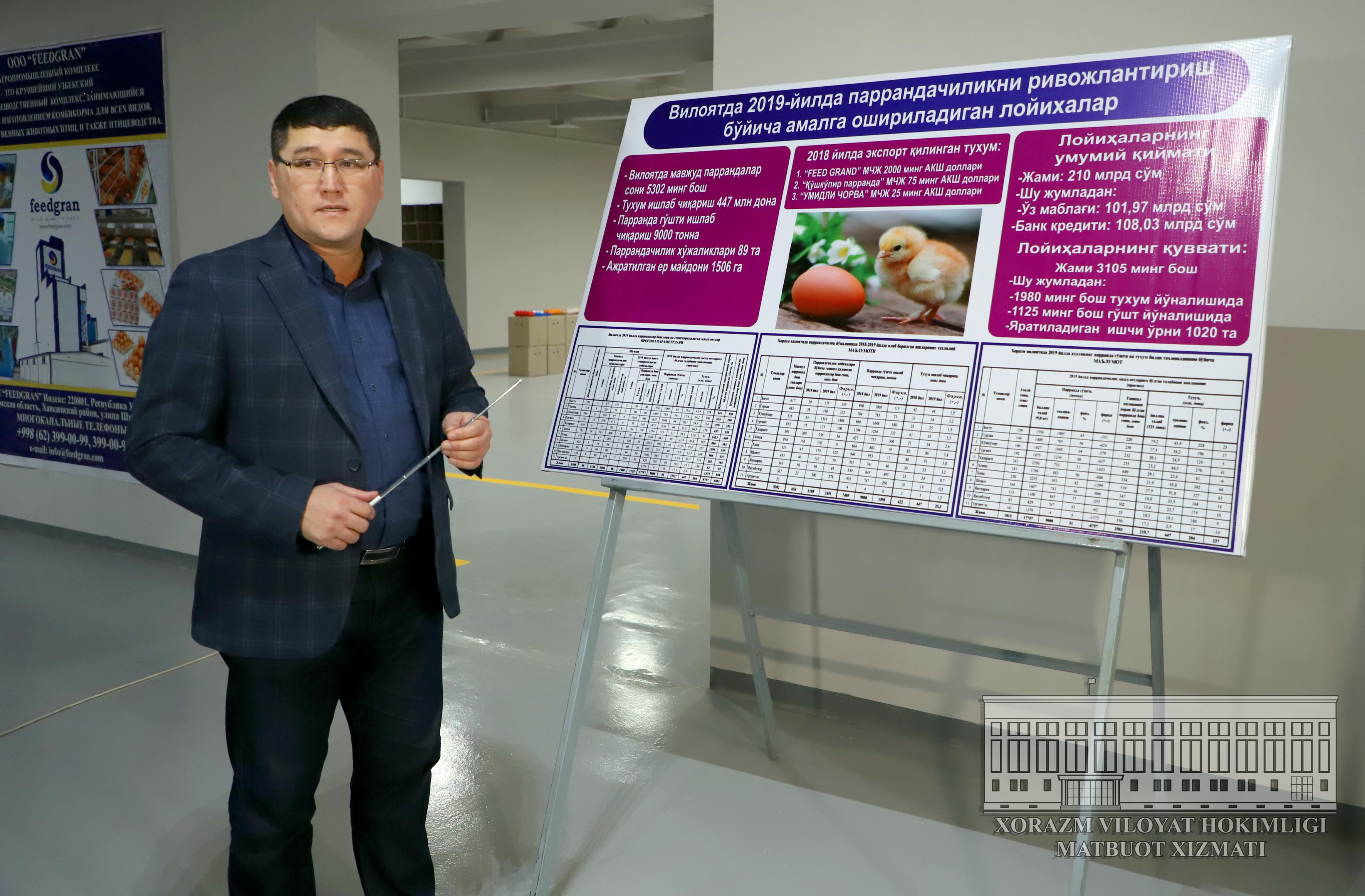 Аҳолини парҳез гўшт ва тухум билан таъминлаш, паррандачилик хўжаликларини ривожлантириш ва маҳсулотларни экспорт қилиш учун амалга оширилаётган ишлар бунинг яққол тасдиғи бўлмоқда.