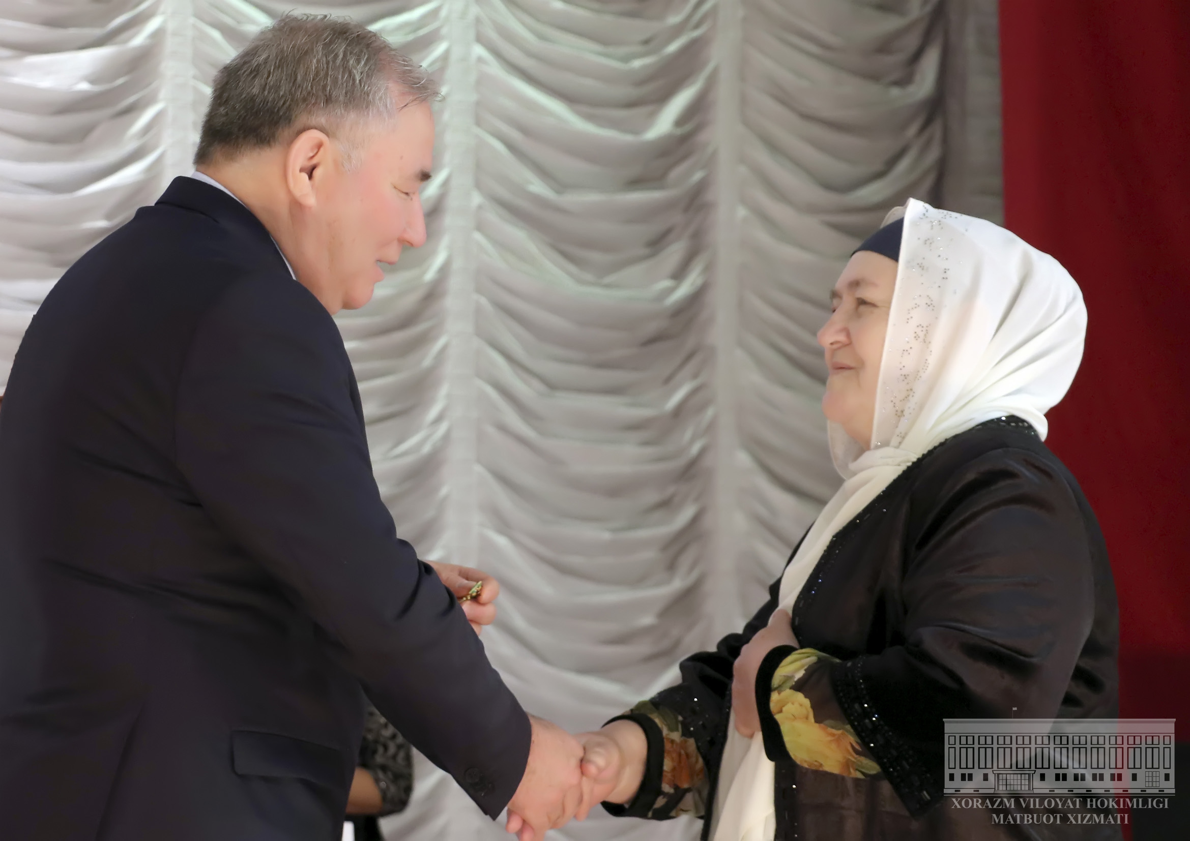 Байрам тадбирида кўп йиллик меҳнатлари билан эл-юртимизда ҳурматга сазовор бўлган аёлларга "Мўътабар аёл" кўкрак нишони тантанали равишда топширилди.