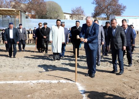 Қўлларини дуога очган нуроний отахонлар қурилиши бошланган мазкур мактабда фарзандларимиз комил инсон бўлиб тарбияланишини ният қилишди.