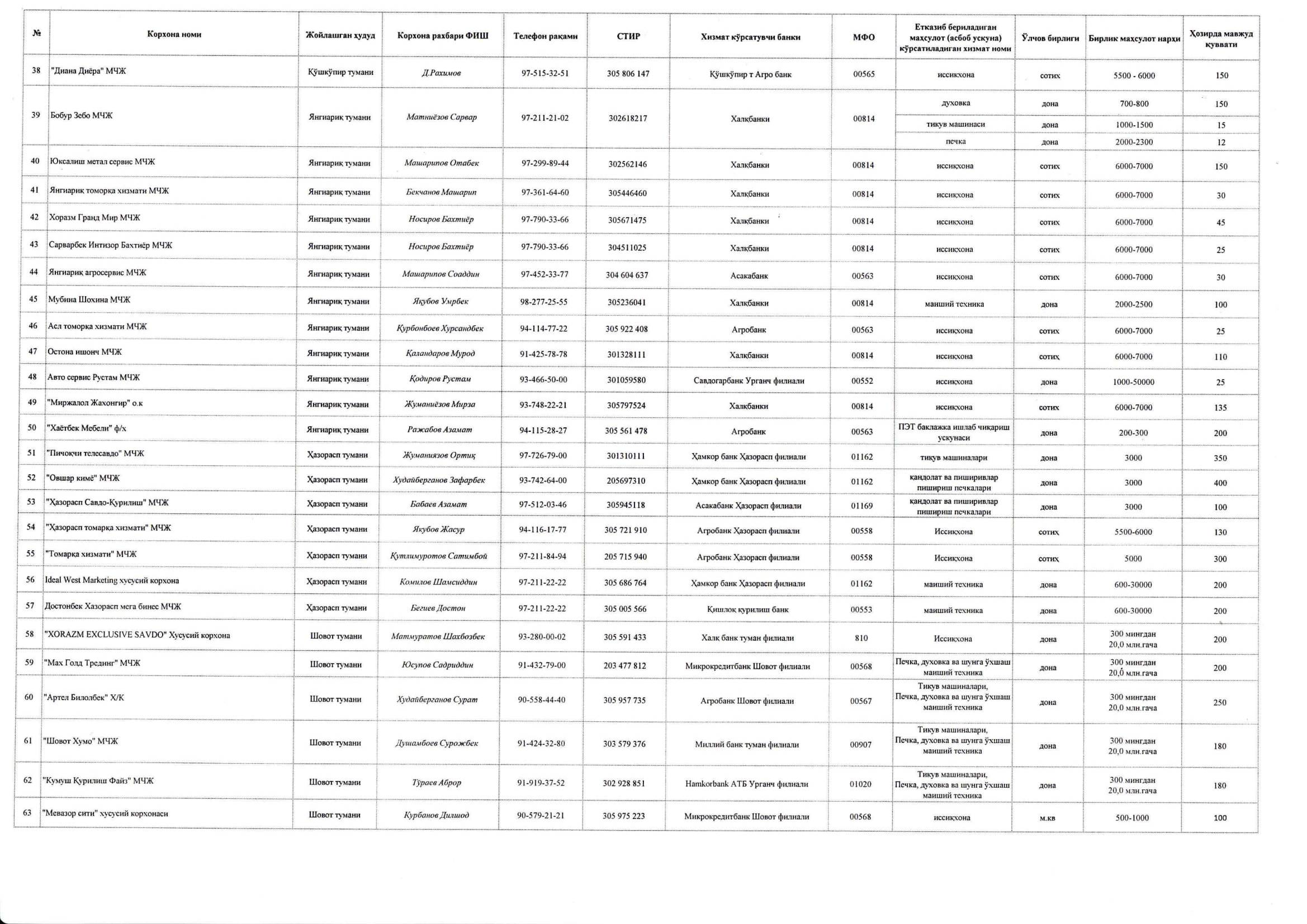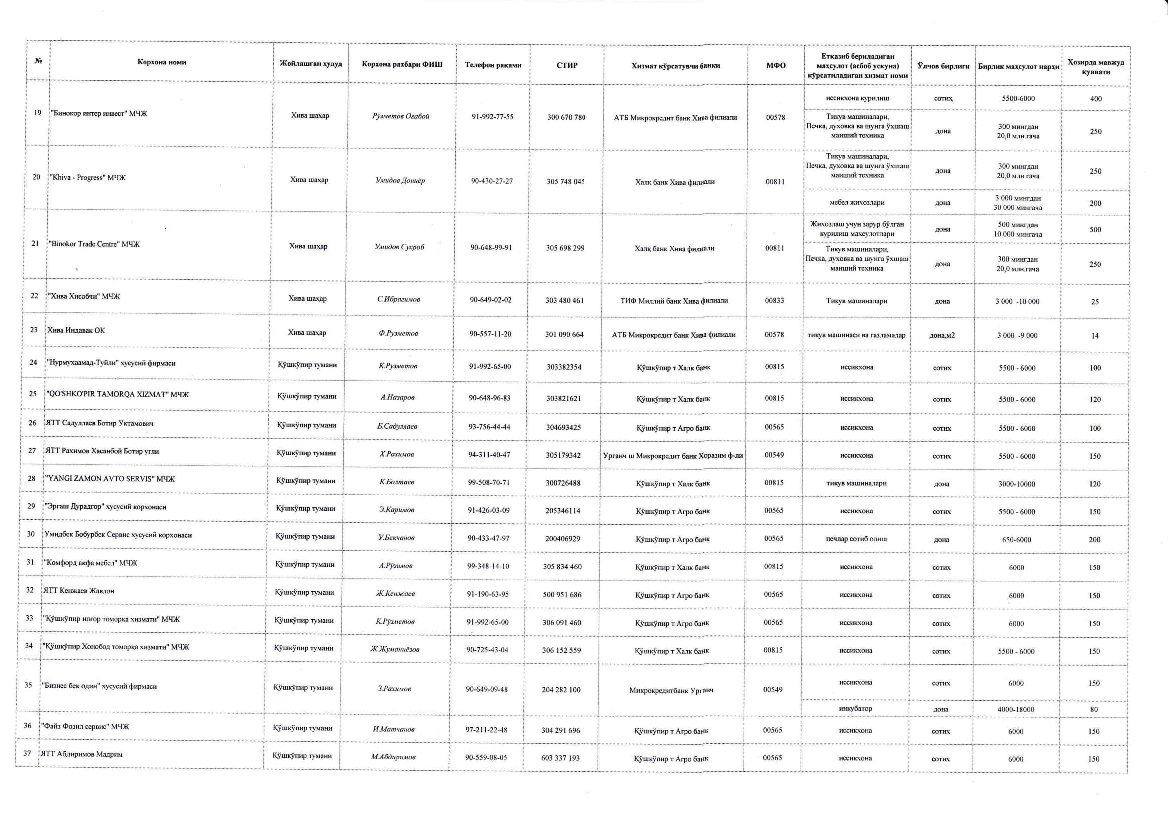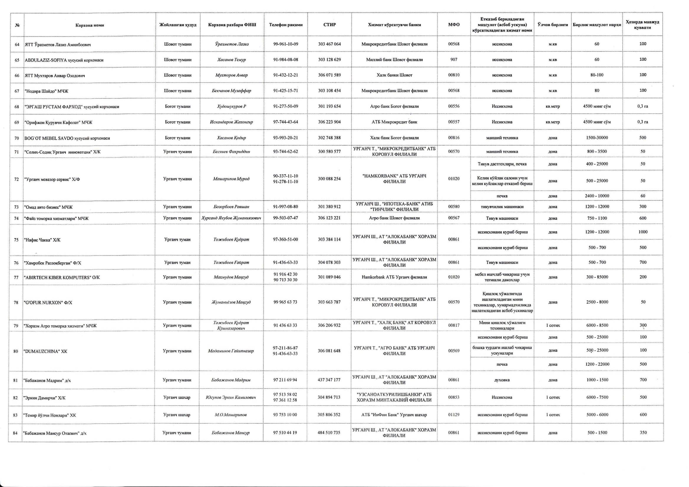 Ҳар бир оила тадбиркор давлат дастури бўйича маҳсулот етказиб берувчи таъминотчи корхоналар рўйхати