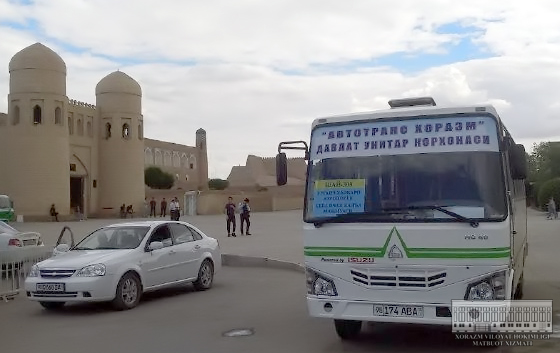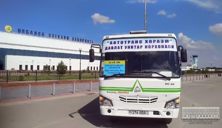 В целях их выполнения Хорезмским областным транспортным управлением министерства транспорта Республики Узбекистан проводится ряд мероприятий. В частности, по маршруту, проходящим по направлению "Международный аэропорт "Ургенч" - государственный музей-заповедник "Ичан-калъа" в городе Хиве поставлены 3 новых автобуса марки "Исузу", принадлежащие унитарному предприятию "Автотранс Хоразм" при министерстве транспорта Республики Узбекистан.