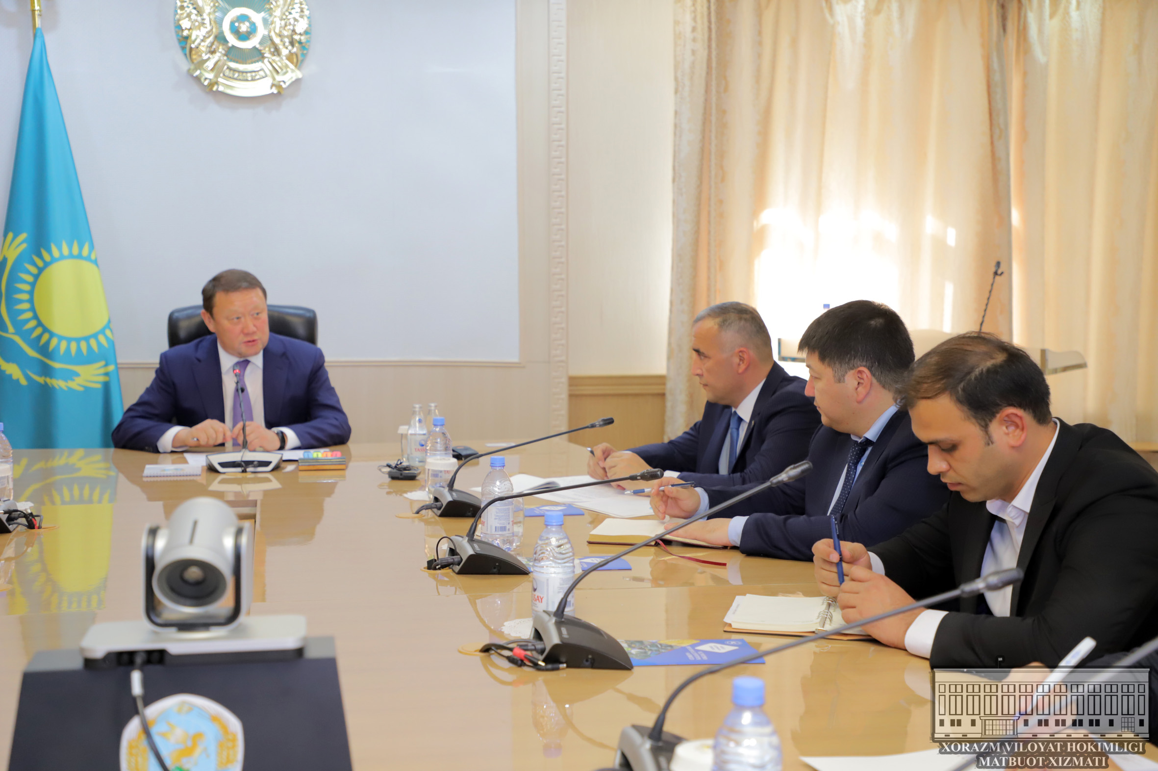 - Минтақамиз Россия Федерацияси билан чегарада жойлашган бўлиб, аграр вилоят ҳисобланади. Тахминан 4 миллион гектар майдон турли экинлар, шу жумладан, 5 миллион тоннадан зиёд дон экилди. Қозоғистон Республикаси ҳудуди бўйлаб Европа ва Хитой ўртасида темир йўл юкларининг 70 фоиздан кўпроғи Шимолий Қозоғистон вилоятидан ўтади, бу эса катта имкониятларга эга. - Ўз навбатида, Ўзбекистондан пахта маҳсулотлари, сабзавот ва мевалар импорт қилинади. Қадимий Хива ва Урганч сайёҳларни жалб қилган узоқ тарихга эга шаҳарлардир. Бизнинг ҳудудимиз эса мавжуд 2500 та кўллари билан машҳур, демак биз туризм соҳасидаги ҳамкорлигимизни хам янада ривожлантиришимиз зарур, - дейди вилоят ҳокими К.Аксакалов