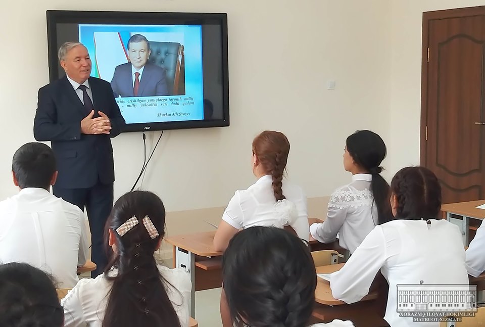 Жорий йилнинг 23 август куни давлатимиз раҳбари раислигида бўлиб ўтган халқ таълими тизимини ривожлантириш, педагогларнинг малакаси ва жамиятдаги нуфузини ошириш, ёш авлод маънавиятини юксалтириш масалаларига бағишланган видеоселектор йиғилишида соҳадаги долзарб вазифалар белгилаб олинди. Бугунги кунда таълим сифатини ошириш, тизимдаги муаммоларни самарали ҳал этиш, кадрлар тайёрлаш тизимини тубдан такомиллаштириш бўйича амалий ишларга қўл урилди. Хоразм вилоятидаги 536 та таълим муассасаси, шундан, 522 та мактаб (шу жумладан, 4 та махсус мактаб-интернат, 3 та санаторий типидаги мактаб-интернат, 13 та айрим фанлар чуқур ўқитишга ихтисослаштирилган мактаб-интернатлар), 1 та Болалар шаҳарчаси, 1 та Оилавий болалар уйи, 12 та “Баркамол авлод” болалар марказларида 339 минг 646 нафар ўқувчиларга 29 минг 978 нафар педагоглар таълим-тарбия бермоқда.