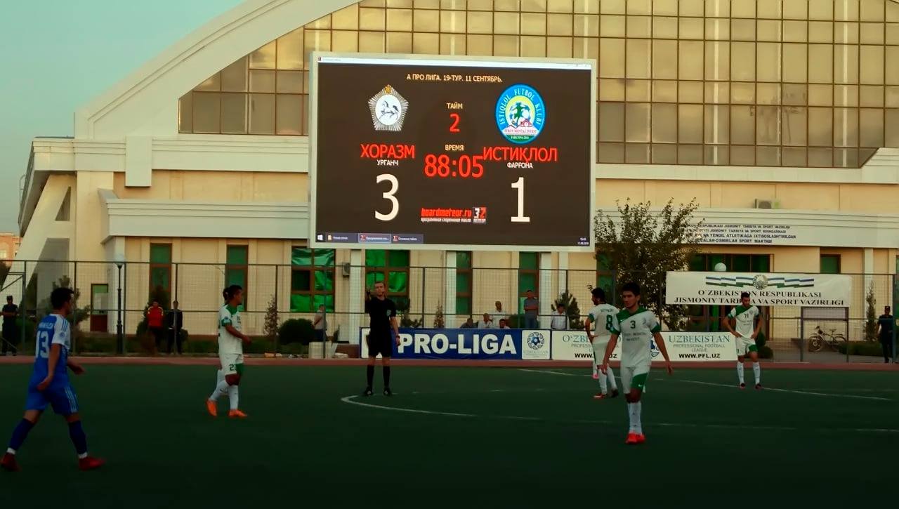 «Хоразм» клуби мусобақа жадвалида 2-ўринда бораётган «Истиқлол»ни 3:1 ҳисобида мағлуб этди.