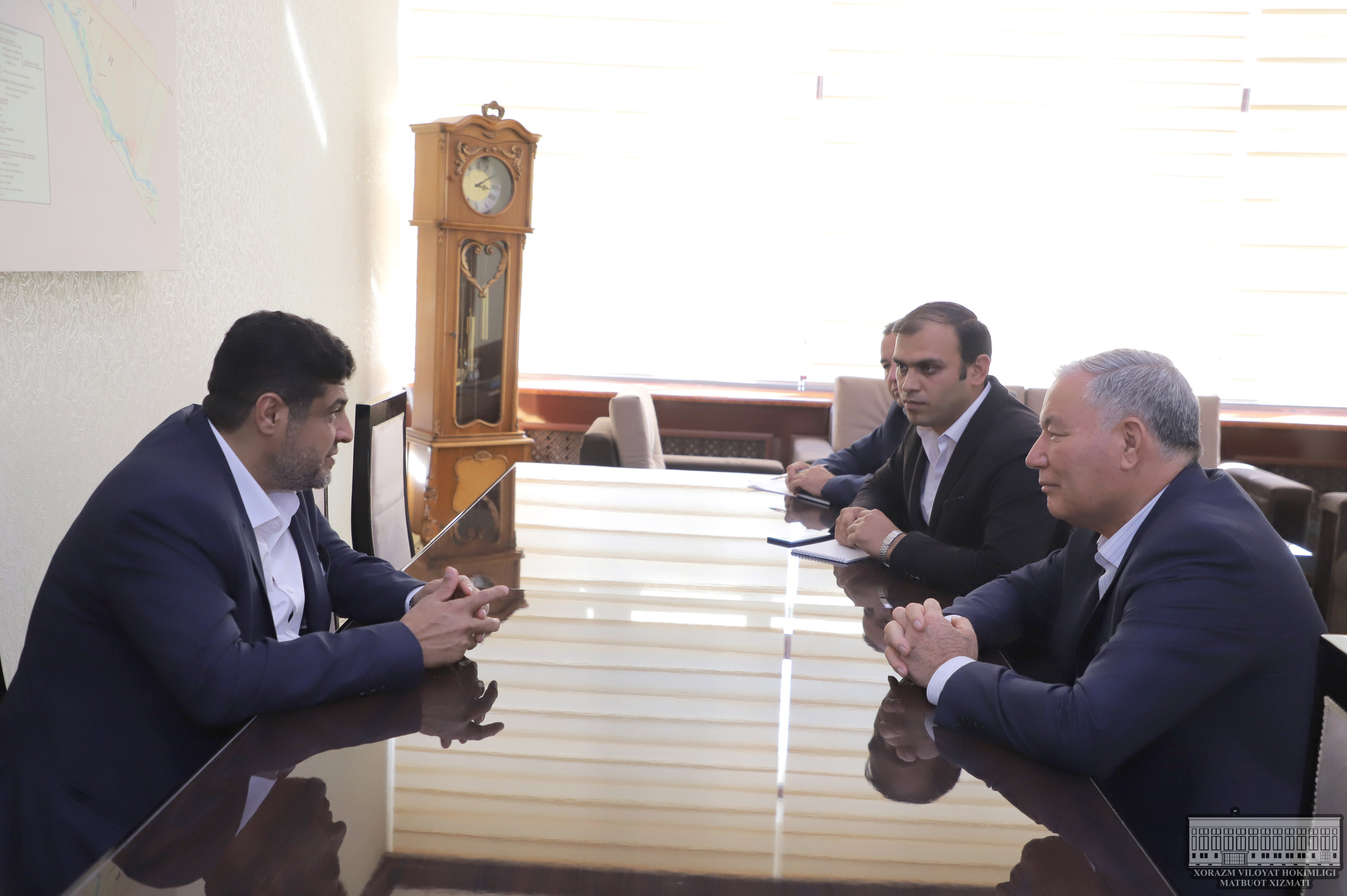 Саудиа Арабистоннинг QUSAIRE компанияси бош директори Abdul Aziz Al Qusaire қишлоқ хўжалиги махсулотларни вилоятидан импорт қилиб Саудия Арабистонига олиб кетиш ва чет эллик тадбиркорларга яратилаётган шароитлар билан танишиш мақсадида Хоразм вилояти ҳокими Фарход Эрманов билан учрашди. Учрашув давомида вилоятнинг экпорт ва инвестиция салоҳияти хусусан, бугунги кунда хорижий инвесторлар учун яратилган имкониятлар, уларга берилган имтиёз ва преференсиялар ҳақида тўлиқ маълумот бериб ўтилди. Шунингдек, вилоятдаги текстил, мева сабзавотларни қайта ишлаш, чорвачилик, балиқчилик, паррандачилик, пиллачилик, заргарлик ҳамда агрологистика марказлари, туризм ривожи учун мехмонхоналарни ташкил этиш буйича катта имкониятлар мавжудлиги таъкидлаб ўтилди. Abdul Aziz Al Qusaire қишлоқ хўжалиги, тиббиёт ва туризмни ривожлантириш борасида катта қизиқиш билдирди ва сўнгги 3 йилда Ўзбекистон Республикаси Президенти томонидан иқтисодиётни ривожлантириш ҳамда аҳолиниинг турмуш даражасини ошириш бўйича катта ислоҳотлар амалга оширилаётганини ва бу ўзининг натижасини бераётганини алоҳида таъкидлаб ўтди.