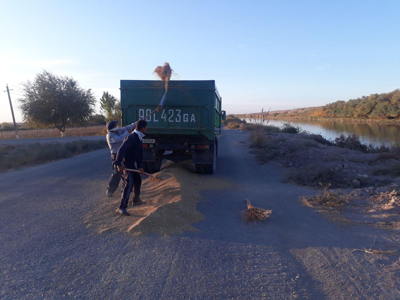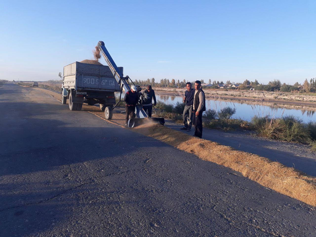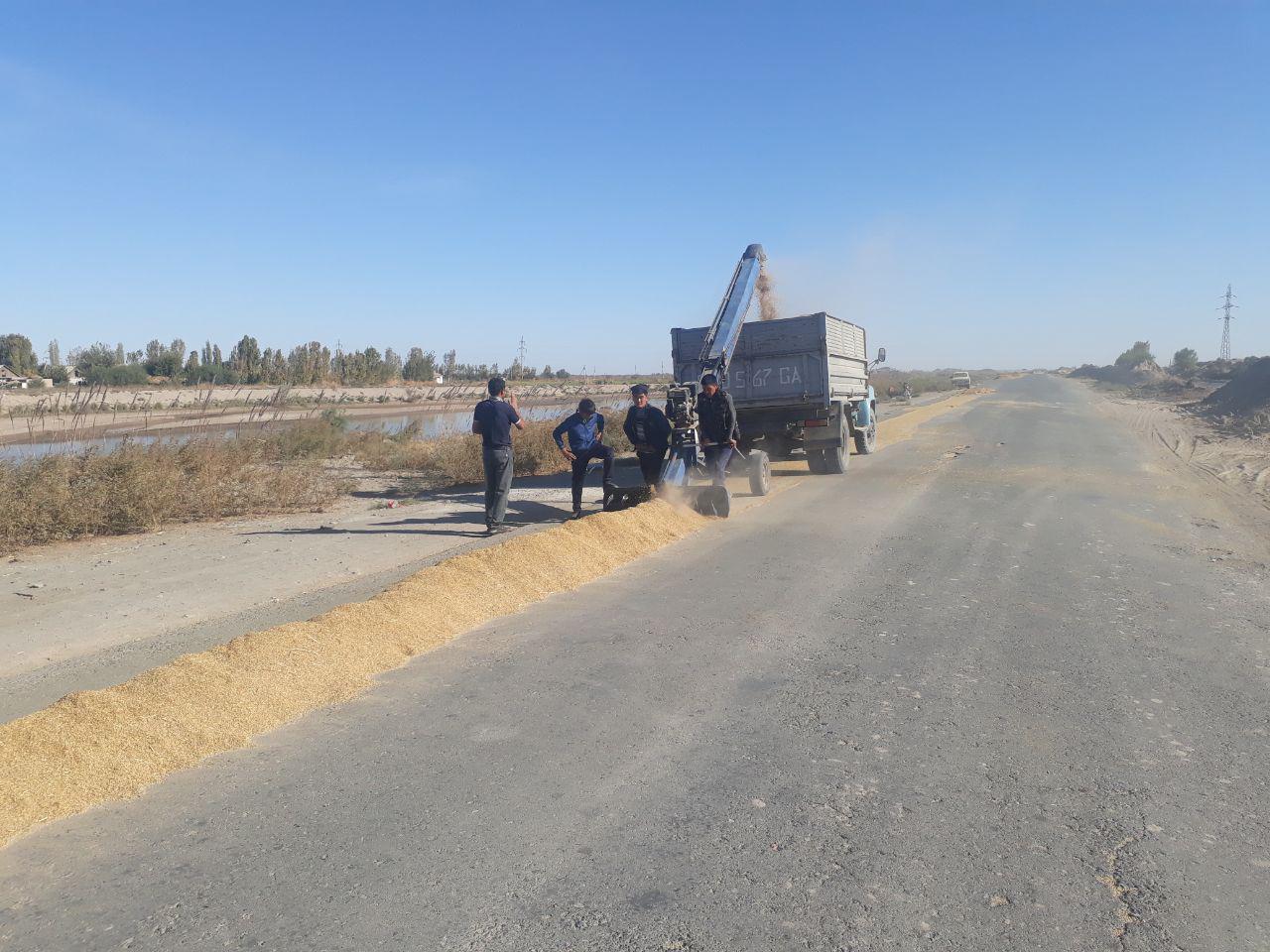 “Хоразмнинг Хонқа туманида серқатнов йўллардан хирмон сифатида фойдаланилмоқда” сарлавхаси остида чоп қилинган мақола юзасидан Хоразм вилояти ҳокимлиги Матбуот хизмати Хоразм вилояти ИИБ ЙХҲБ матбуот хизмати билан ҳамкорликда Хонқа туманидаги 4Р 170 “Хонқа –Ал Хоразмий-Боғот” автомобил йўлига бориб вазият ўрганилди. Ҳақиқатдан хам хонқалик фермерга тегишли 15 тонна шолининг автомобиль йўлига ётқизилиши натижасида автомобиллар ҳаракатига ноқулайлик туғдирган.