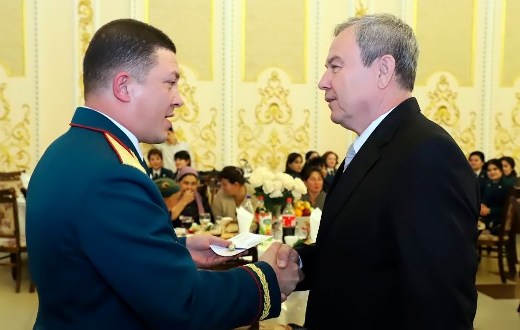 Шундан кейин соҳанинг бир гуруҳ фидойи ходимларига ИИВ нинг турли кўкрак нишонлари, эсдалик қўл соатлари ва “Фахрий ёрлиқ”лари ҳамда бир гуруҳ фахрийларга “Ўзбекистон Республикаси ИИВ фахрийси” кўкрак нишони тантаналари равишда топширилди. Хизмат вазифасини бажариш пайтида вафот этган ходимларнинг оила аъзоларига байрам совғалари улашилди. Тантанали тадбирда санъаткорлар томонидан ижро этилган куй ва қўшиқлар барчага кўтаринки кайфият улашди. Хоразм вилояти ҳокимлиги Матбуот хизмати