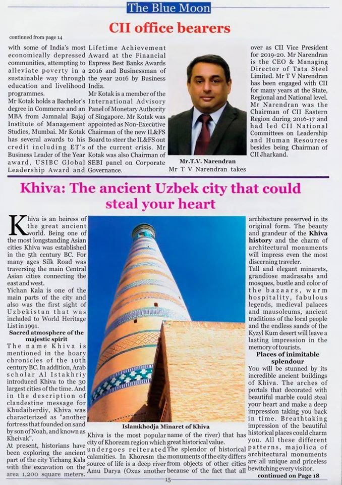 Ҳиндистоннинг машхур "The Blue Moon" журналида Хива ҳақида мақола чоп этилди.