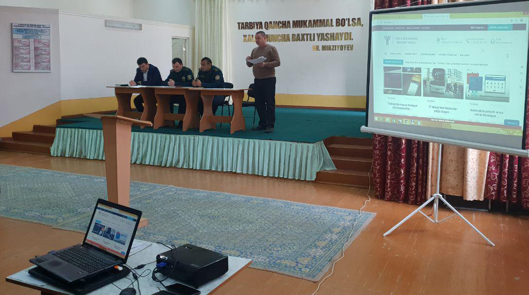 Семинарда Ўзбекистон Республикаси Вазирлар Маҳкамасининг 2019 йил 30 июлдаги 636-сонли “Автомобиль транспортида йўловчиларни ва юкларни шаҳарда, шаҳар атрофида, шаҳарлараро ва халқаро йўналишлар бўйича ташиш фаолиятини лицензиялаш юзасидан давлат хизматлари кўрсатишнинг маъмурий регламентини тасдиқлаш тўғрисида”ги қарори ижросини таъминлаш, шунингдек, 2020 йил 1 январидан бошлаб автомобиль транспортида йўловчиларни ва юкларни шаҳарда, шаҳар атрофида, шаҳарлараро ва халқаро йўналишлар бўйича ташиш фаолиятини лицензиялаш жараёнига ахборот-коммуникация технологияларини қўллаган ҳолда лицензия ва лицензия варақаларини электрон тарзда расмийлаштириш тизимини жорий этилиши муносабати билан бошқарма ва Давлат хизматлари агентлиги олдида турган долзарб вазифалар тўғрисида туман ва шаҳар юк ва йуловчи ташиш фаолияти билан шуғулланувчи масъул ходимлари ўртасида фикр алмашилди ва интерактив давлат хизматлари портали орқали мурожаат қилиш тушунтирилди.