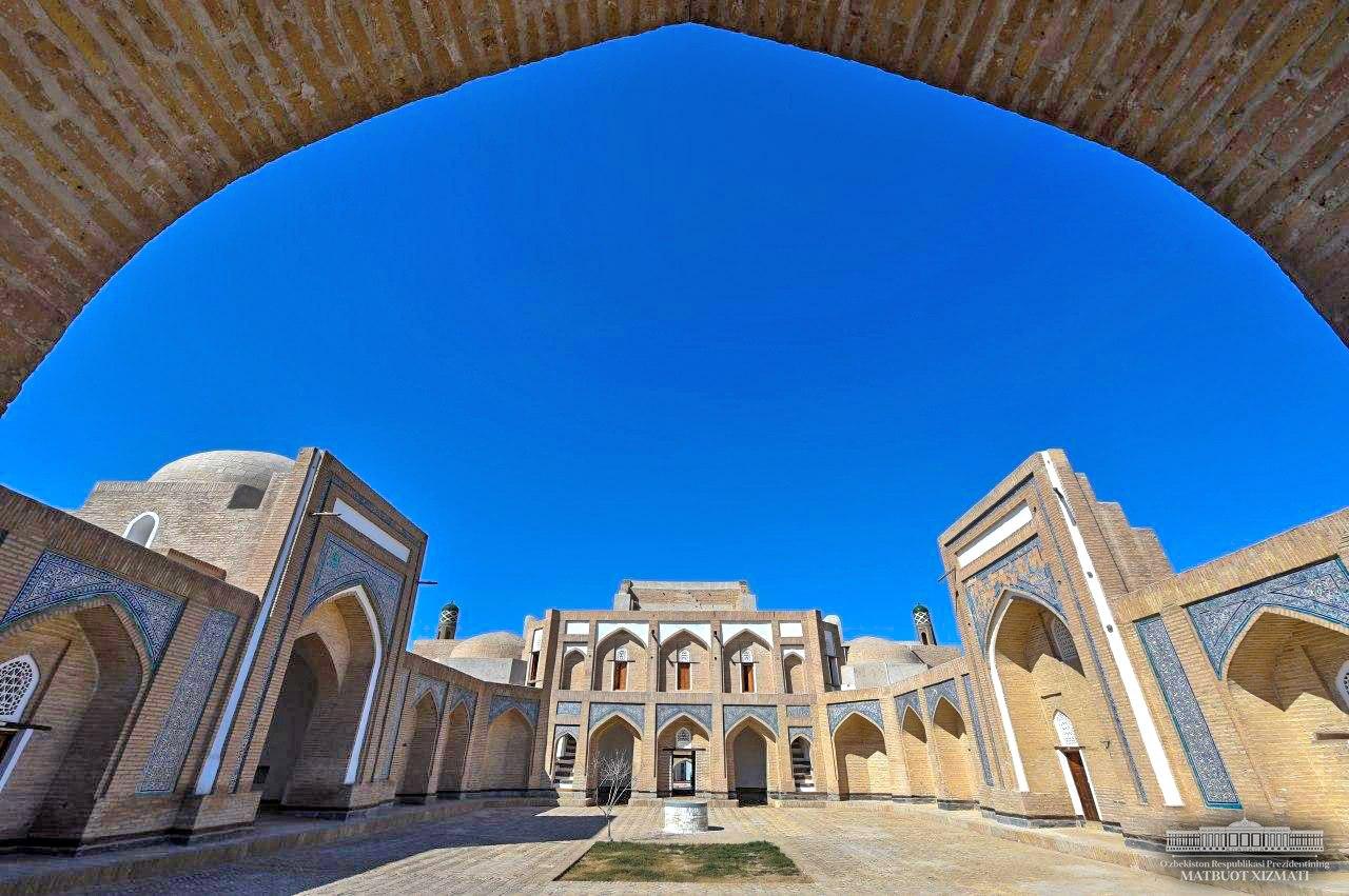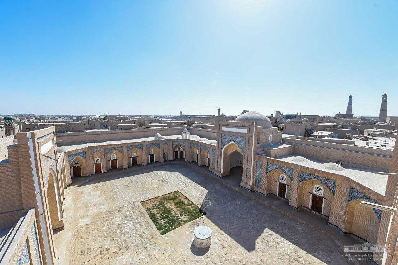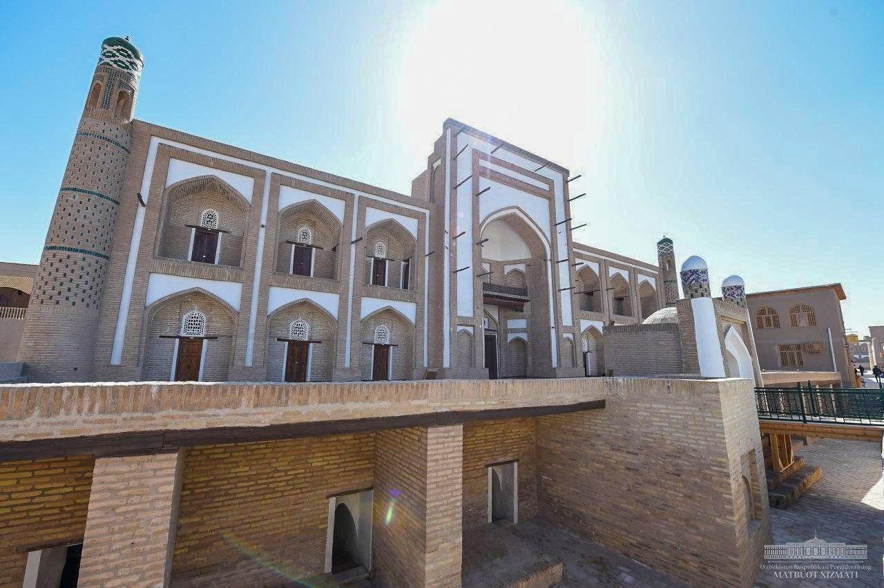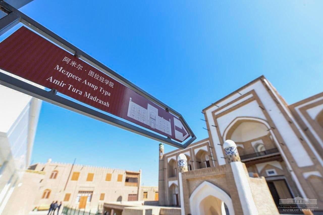 Президент Шавкат Мирзиёев Хива шаҳридаги Ичан қалъа мажмуасига ташриф буюриб, Амир Тўра мадрасасида амалга оширилган реставрация ишлари билан танишди.