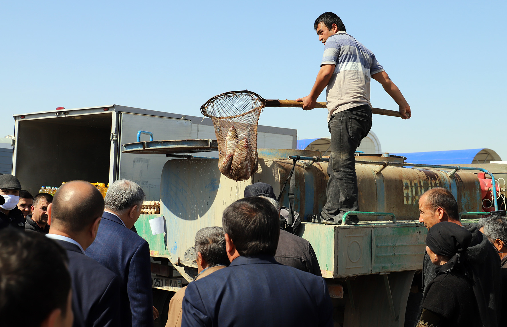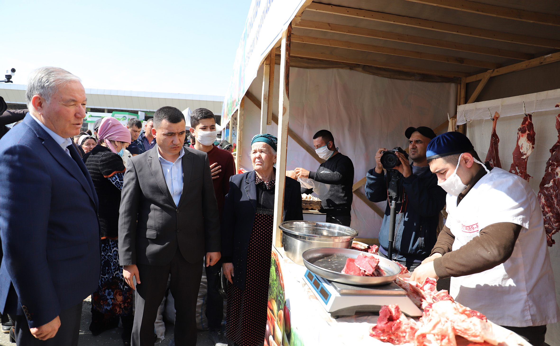 Бугун Хоразм вилоят ҳокими Ф.Эрманов, вилоят сектор раҳбарлари, шаҳар ва туман ҳокимлари билан биргаликда савдо ярмаркасининг фаолияти билан яқиндан танишди. Унда 26 турдаги озиқ-овқат ва қишлоқ хўжалиги маҳсулотлари билан иштирок этаётган тадбиркорлар, фермерлар ва деҳқон хўжалиги раҳбарлари билан карантин даврида озиқ-овқат ва қилоқ хўжалиги маҳсулотларини асоссиз оширмаслик, бу борада Бош прокуратура ҳузуридаги Департаментнинг вилоят бошқармаси, вилоят давлат солиқ бошқармаси назорат тадбирларини мунтазам олиб бориш масалаларига алоҳида эътибор қаратилди.
