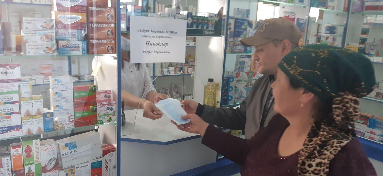 Бундан ташқари тикувчилик корхоналари ҳам ҳимоя ниқобларини ҳайрия тарзида тарқатмоқда. Бугун жума куни муносабати билан 12 та дорихоналар томонидан 10 000дан ортиқ ҳимоя ниқоблари бепул тарқатилди.
