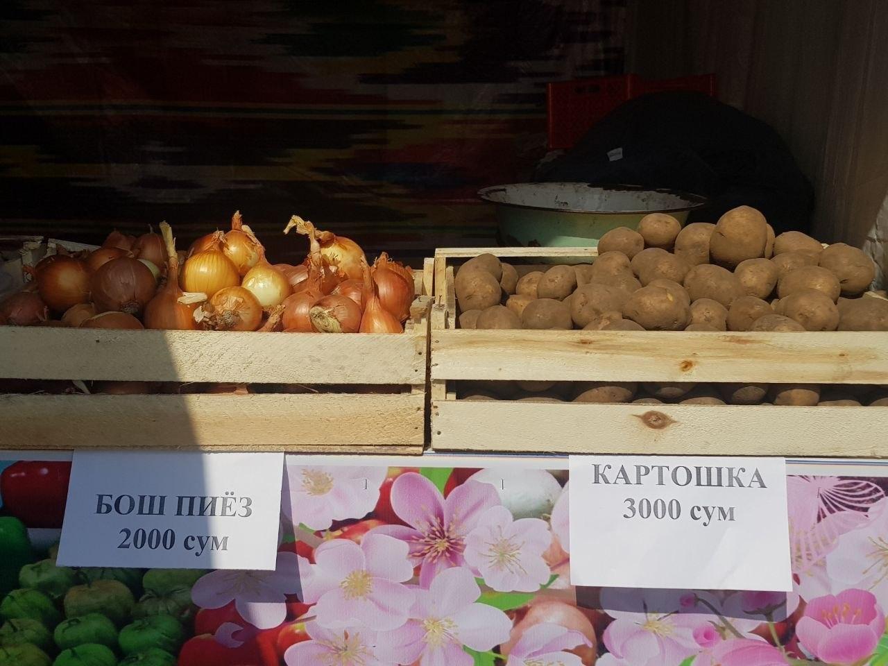 Хозирда Урганч марказий деҳқон бозорининг расталарига ҳам картошка ва пиёз махсулотлари сотиш учун етказиб берилди.