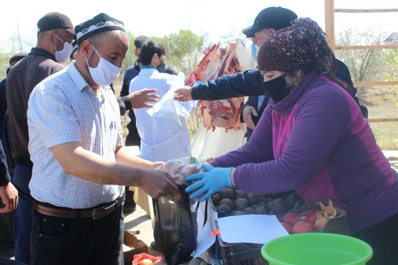 Ушбу савдо бозорчада «Сиз уйда колинг, биз сизга етказамиз!» шиори остида 10га яқин автомашиналарда 27 турга яқин маҳсулотлари хариди ташкиллаштирилди. Шунингдек, туман марказидаги «Оталиқ» маҳалласида фермер хўжаликларининг махсулотидан арзонлаштирилган ярмарка ҳам ташкил қилинди. Ярмаркада гўшт, тухум, макарон, ёғ, полиз экинлари ва қишлоқ хўжалиги махсулотлари ҳамда зарур дори-дармон воситалари эркин нархларда сотилмоқда.