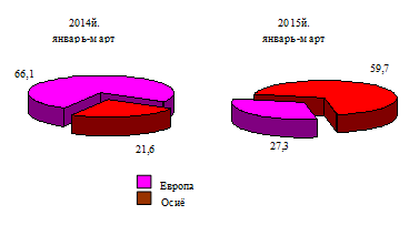 | 2014y yanvar-mart | 2015y yanvar-mart | 2014 yil yanvar-martga nisbatan foiz hisobida | |