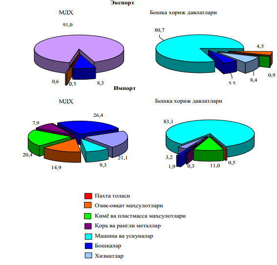 Eksport va import hajmi va tarkibidagi o‘zgarishlar