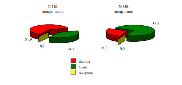 | 2014y yanvar-iyun | 2015y yanvar-iyun | 2014 yil yanvar-iyuniga nisbatan foiz hisobida | |