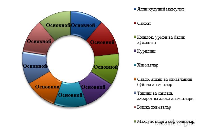 ташиш ва сақлаш, ахборот ва алоқа – 103,4 фоиз (10,3 фоиз) ва хизмат кўрсатувчи бошқа тармоқлар – 107,1 фоиз (26,5 фоиз) ни ташкил қилди.