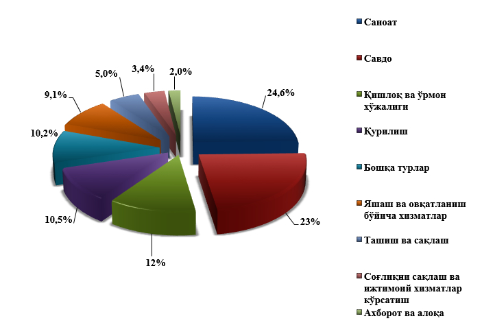 иқтисодий фаолият турлари бўйича тақсимланиши