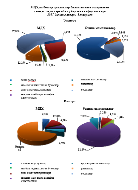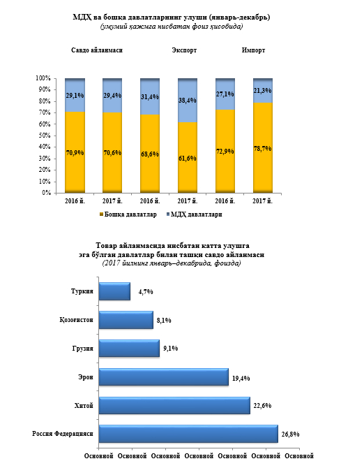 2017 йилнинг январь-декабрда МДҲ ва бошқа давлатлар кесимида
