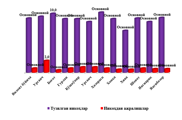 Тузилган никоҳлар сонининг кўпайиши Урганч шаҳрида