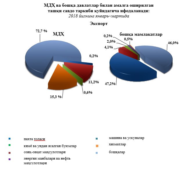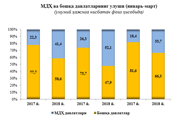 2018 йилнинг январь-мартда МДҲ ва бошқа давлатлар кесимида