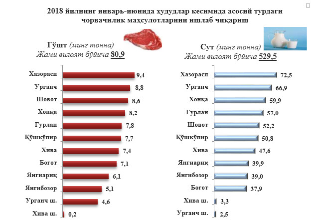 2018 йил январь-июнь ойларида ишлаб чиқарилган чорвачилик маҳсулотлари