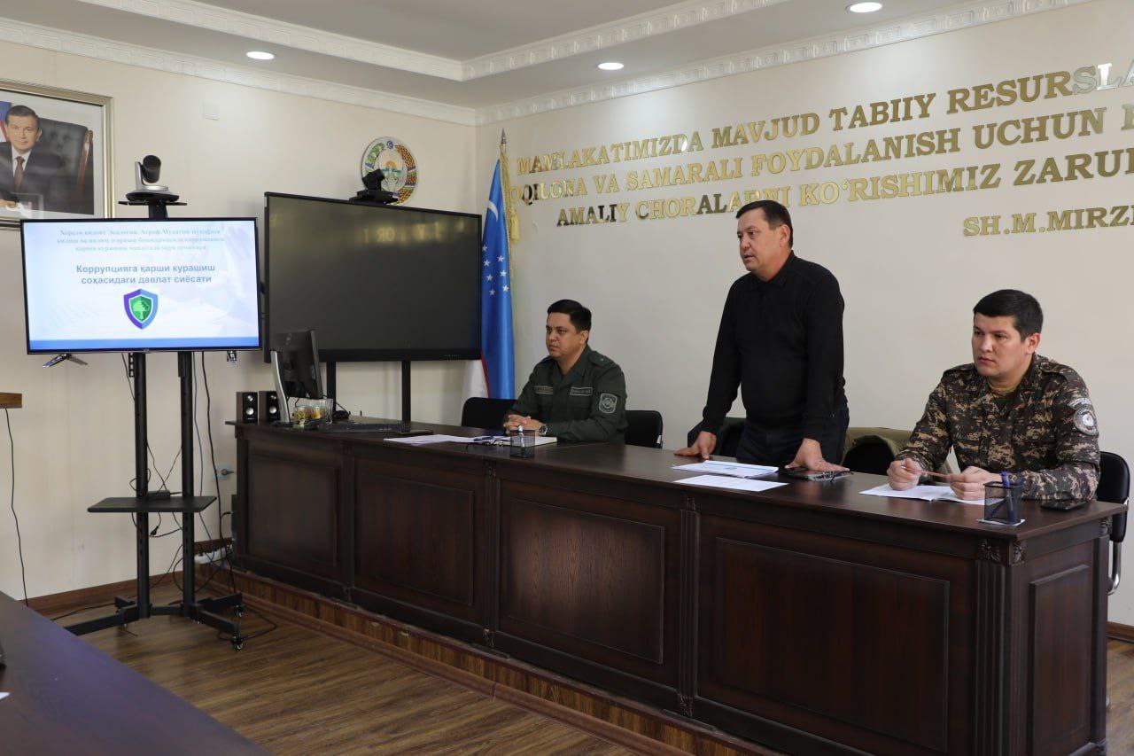 Korrupsiyaga qarshi kurashish bugunning dolzarb masalasi ekanligi, korrupsiya holatlari sodir qilinganda qonunchilikda belgilangan javobgarliklar hamda ushbu sohaga oid qonunchilik hujjatlari toʼgʼrisida batafsil toʼxtalib oʼtildi. Seminar ishtirokchilariga ekologiya sohasida korrupsiyaga qarshi kurash choralarini kuchaytirish, bu boradagi huquqiy asoslarni yanada mustahkamlash hamda noqonuniy xatti-harakatlarni oldini olish yuzasidan zarur tushunchalar berildi.