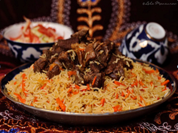 Tarkibi: 1kg guruch, 1kg go‘sht, 500gr sabzi, 300gr yog‘, 300gr piyoz, tuz va murch.